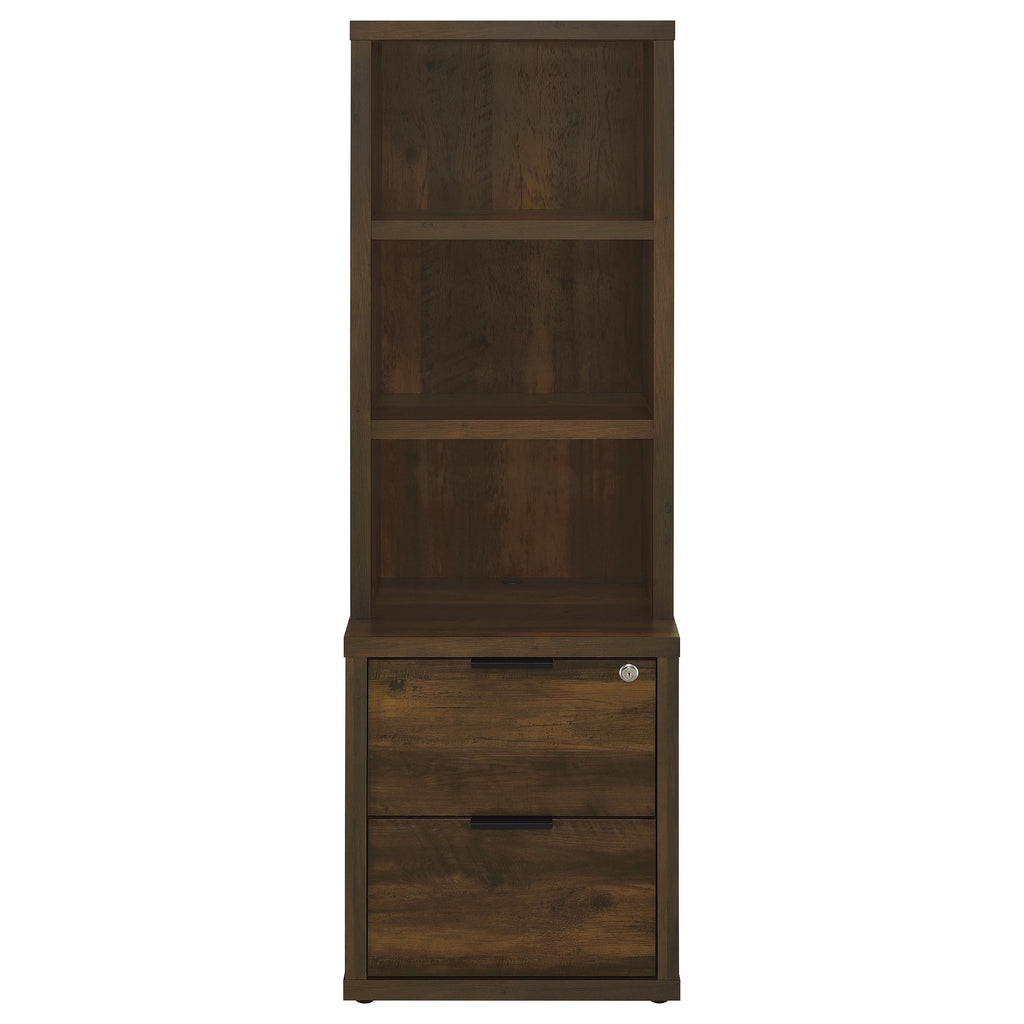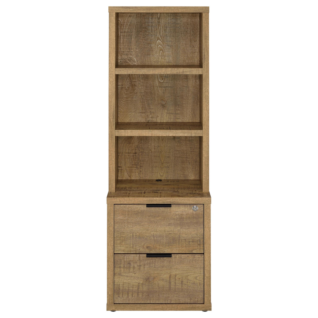 This 3-piece bedroom set includes a bookcase headboard and two coordinating nightstands designed for practical bedroom storage. Open cubbies on the headboard and hutches keep books and essentials within reach, while lockable top drawers add secure storage. Each nightstand features built-in USB-A and USB-C charging ports. Made from engineered wood and finished in a scratch-resistant laminate veneer, the set delivers durability and everyday convenience across a range of room styles. Key Features: • Three-piece bookcase headboard and nightstand set offers cohesive and functional bedroom storage • Scratch-resistant laminate veneer finish over engineered wood construction • Open cubbies on headboard and nightstands provide easy access to frequently used items • Top drawers on nightstands are lockable for secure storage of personal belongings • Each nightstand includes USB-A and USB-C charging ports for bedside connectivity • Versatile, space-saving design fits seamlessly into a variety of bedroom settings