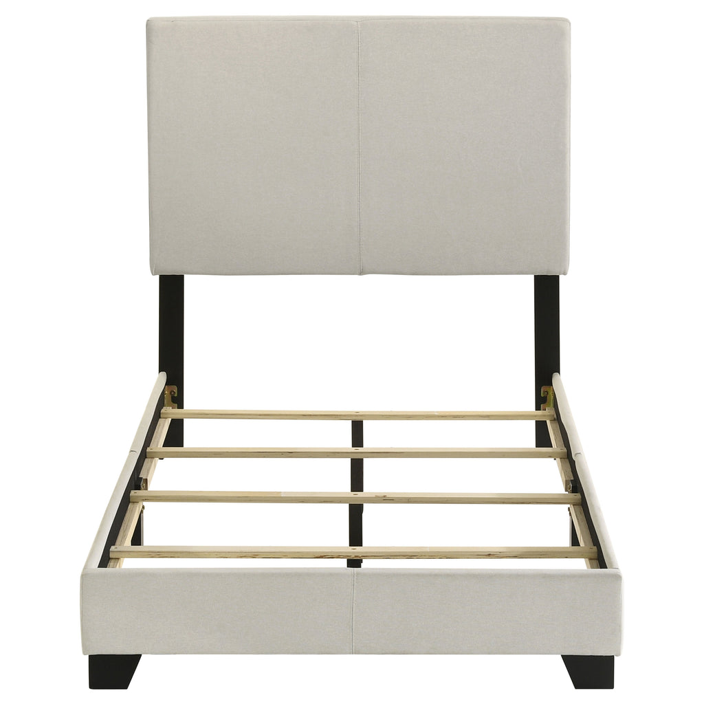 Transform your bedroom with this versatile panel bed, available in both faux leather and fabric upholstery options to suit any decor. Featuring a padded headboard and sleek design, it offers modern elegance and everyday comfort. Crafted with Asian hardwood, engineered wood, and foam, it ensures durability, while solid wood legs in a black finish add stability and a refined touch.