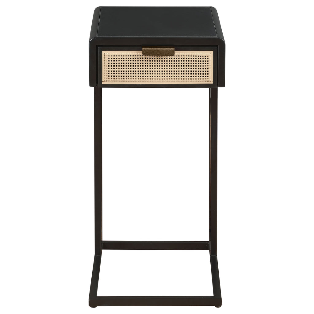 This C-shape side table effortlessly combines style and functionality, making it the perfect accent for your living space. Constructed with a sturdy heavy gauge metal frame, it offers lasting durability while maintaining a sleek, modern profile. The single drawer features a polyethylene (PE) rattan front, adding a touch of natural texture and charm. Its C-shape design allows it to slide easily under sofas or chairs, providing convenient surface space where you need it. This side table is both practical and stylish, ideal for any contemporary home.