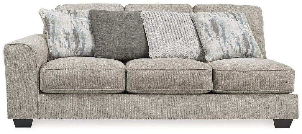 Plush and lovely, this large sectional delights with deep comfort. It’s casually styled with big, roomy seats and modern textured chenille upholstery. You’ll find comfort in its soft back and reversible seat cushions. Guests are sure to fight over who will get to relax on the corner chaise because it’s perfect for getting your legs up and spreading out. The 7 decorative pillows in watercolor and fun abstract designs are included for bringing unique, modern beauty to the look.