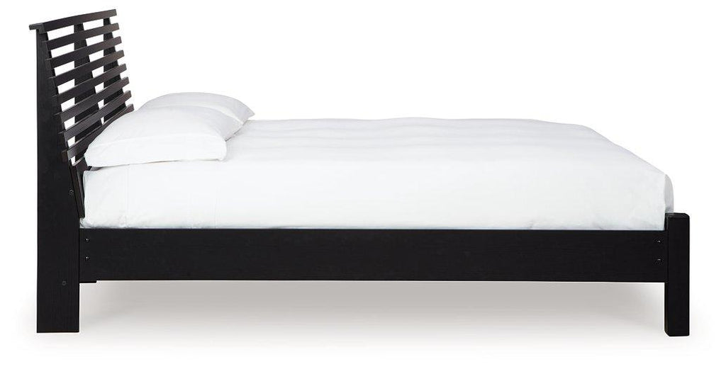 Sophisticated style for the savvy shopper. This panel bed prioritizes affordable, on-trend design. Its subtle replicated texture recalls the natural beauty of wood, highlighting the slatted styling. And a matte black finish savvily suits different approaches to modern aesthetics. Mix and match with light and bright hues, or pair with other dark tones for a moody look.