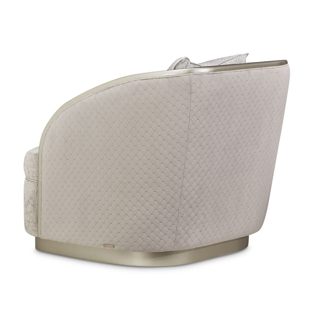 AICO Lanna Matching Chair in Storm Silver Mist NLRU-LANA835-STM-823. Curvy, elegant, and chic. The Lanna Matching Chair is made with sloping platinum rails and soft chenille fabric for the most comfortable support and sitting. Made for creating a dynamic room layout, this chair is backed with a honeycomb-patterned velvet so each angle is as stunning as the last. A new look into modern luxury, Lanna is defined by contoured frames, smooth platinum accents, and contrasting neutral patterns. Designed with the perfect mix of eclectic and complementary, this collection is the next level of chic brilliance.