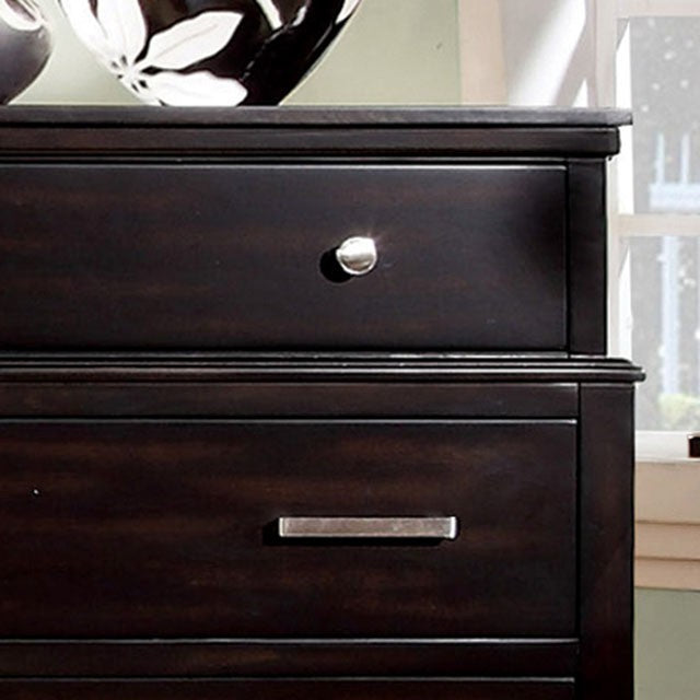 Available in espresso, this contemporary design case goods add an extra creative flair. The tiered design makes this chest a one-of-a-kind piece for those looking to spice up their bedroom.
