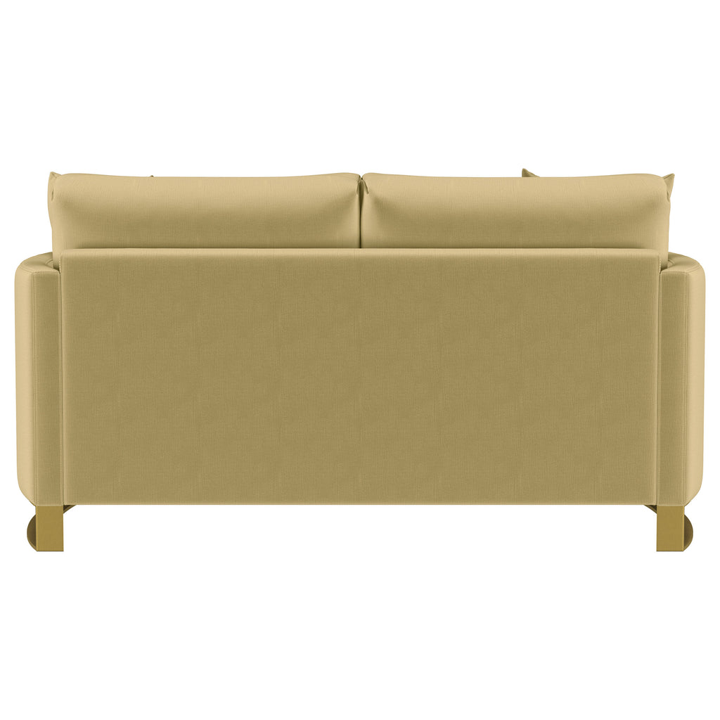 Indulge in opulent comfort with this textured velvet loveseat. Its reversible feather blend seat and back cushions, complemented by curved arms and gold stainless steel legs. Smooth upholstery and lustrous details blend simplicity with timeless splendor, making this piece a perfect focal point for refined interiors. With its inviting profile and graceful presence, it elevates both style and relaxation.