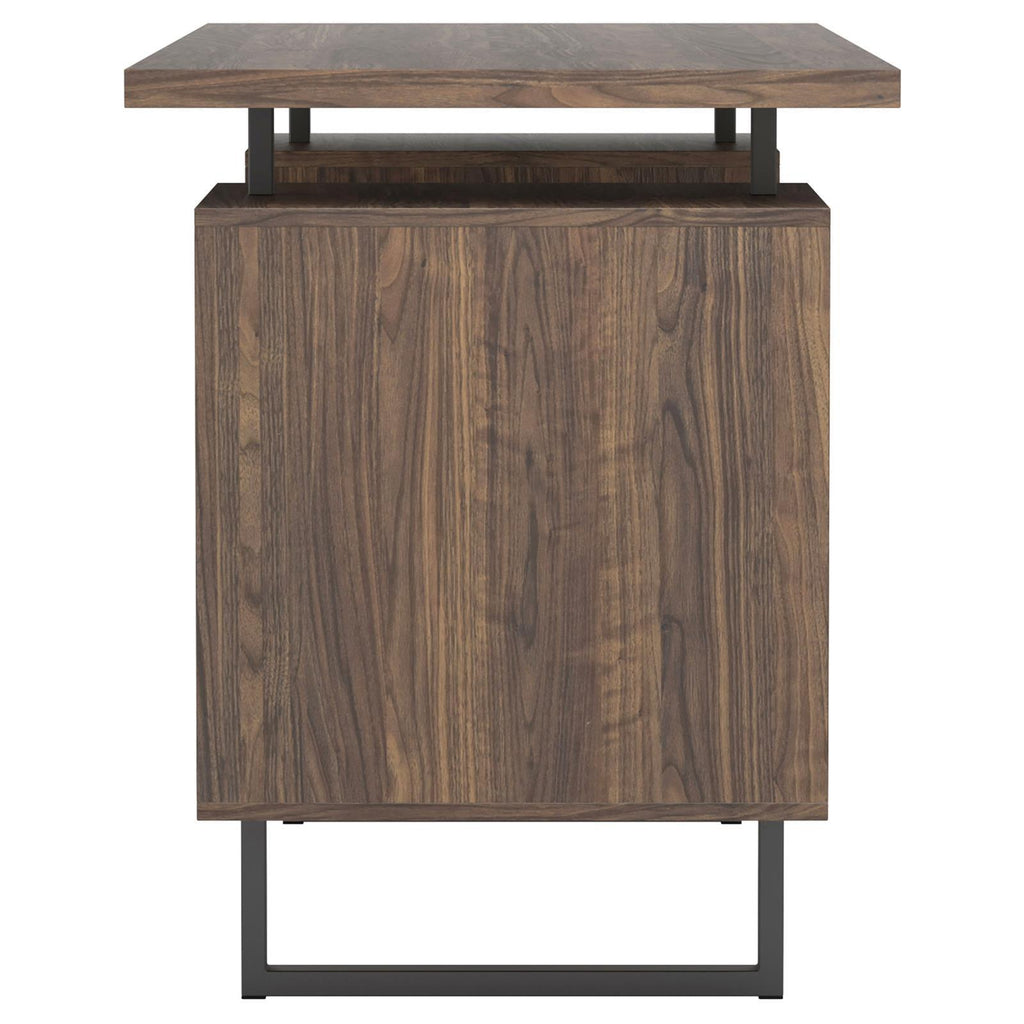 Chic and modern, this wooden writing desk creates a gorgeous focal point in any home office. Sleek lines of silver finish metal create a sturdy foundation for its stylish design. A rectangular, floating tabletop adds visual intrigue to its clean silhouette. A storage cabinet, drawer, and file cabinet keep office essentials organized with ease. Available in your choice of attractive colors, there's an elegant option to effortlessly match with your space.