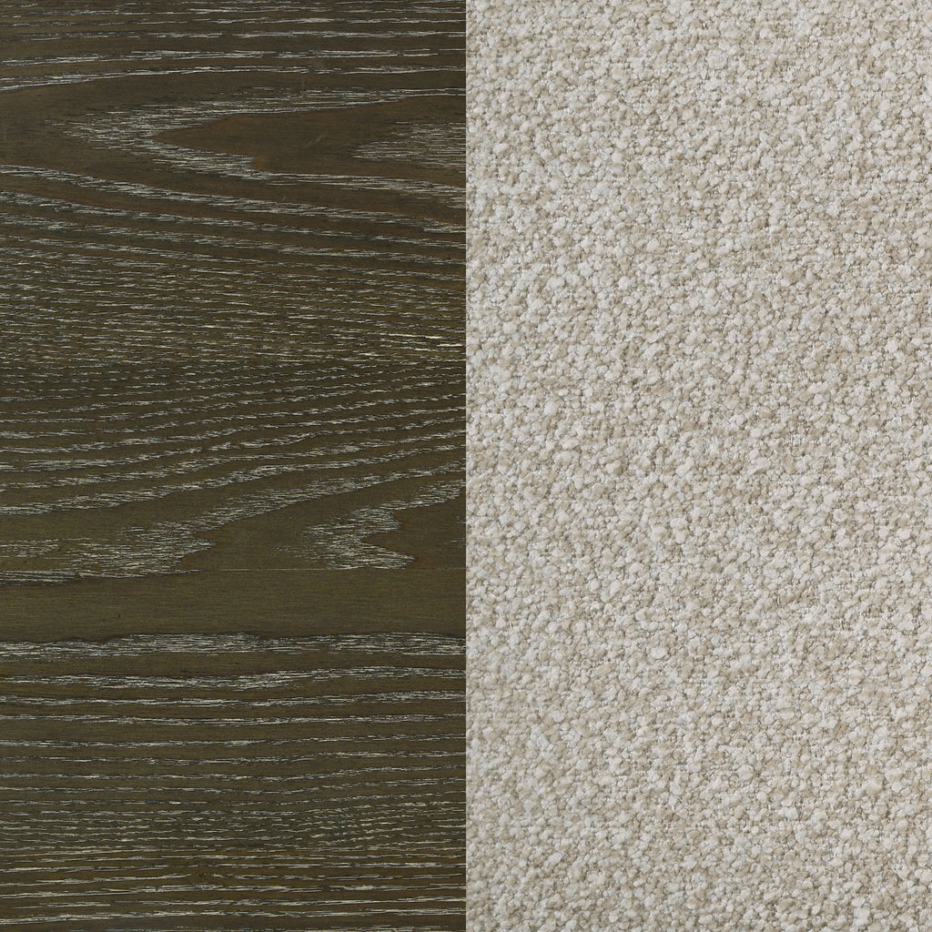 Transform your bedroom into a sophisticated retreat with this transitional canopy bed. Featuring rounded corners and trending design details, this bed offers a perfect blend of style and stability. The headboard is upholstered in textured beige fabric with vertical channeling, adding a touch of elegance. Finished in dark cocoa, the bed is crafted from solid hardwood and ash veneer, ensuring durability and a timeless look. Enjoy the luxurious feel and refined aesthetic of this beautifully designed canopy bed. Key Features: • Transitional queen canopy bed with rounded corners and trending design details • Textured beige fabric headboard with vertical channeling • Dark cocoa finish for a sophisticated look • Crafted from solid hardwood and ash veneer for durability • Available in queen, eastern king, and California king sizes