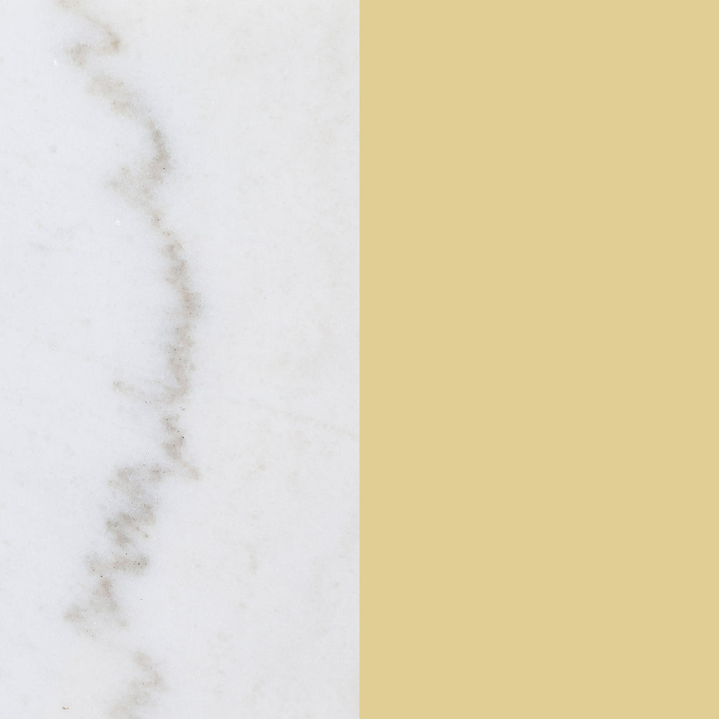 A luscious look, this modern coffee table creates a glamorous aura with its sleek glass and white marble elements. The round smoked tempered glass top rests upon a gleaming white marble shelf, bringing sophistication to any living room. The gold electroplated chrome metal frame, with slim, straight legs, adds a rich, polished finish. The table features crossing stretchers beneath the glass top for added distinction, offering both style and functionality in a luxurious, modern design.