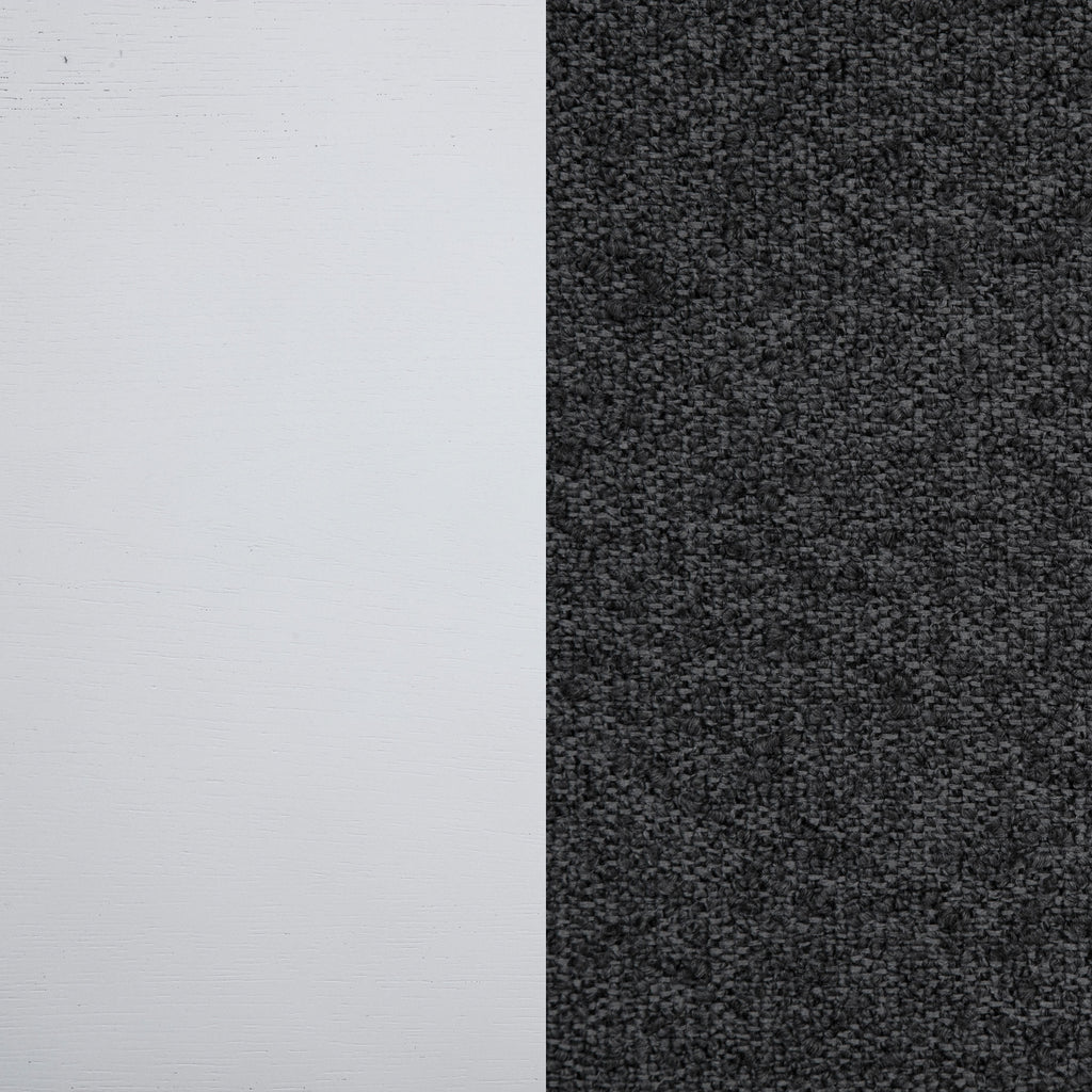 Dimensional gray upholstery creates engaging contrast and depth for this set of two modern dining chairs. Each boasts a tall, refined silhouette that's armless to create a smooth, streamlined silhouette. Cushions are padded with foam and covered in dark gray upholstery. A pearl white finish adds crisp, clean character, delivering a look that works beautifully in a variety of spaces and decor styles. Chairs are complete with flared front legs and squared edges that encourage a clean, precise look.
