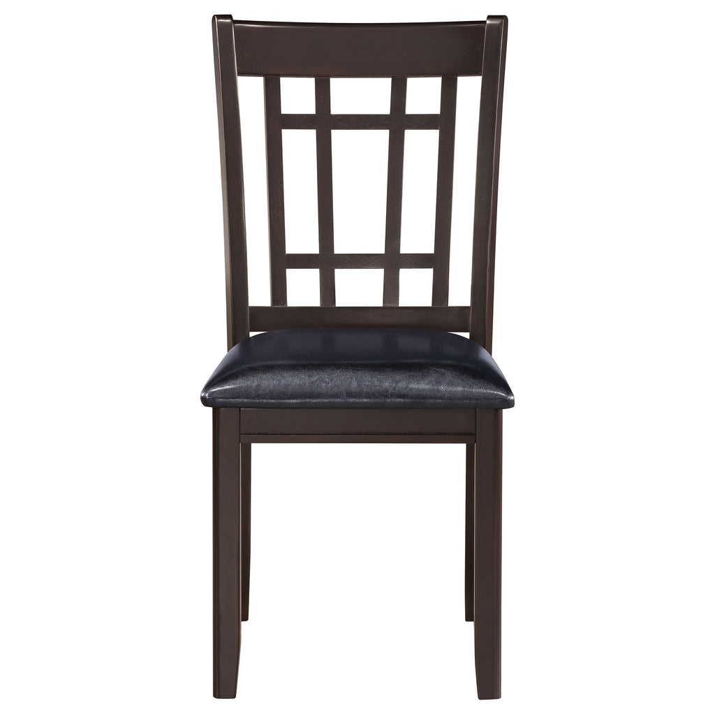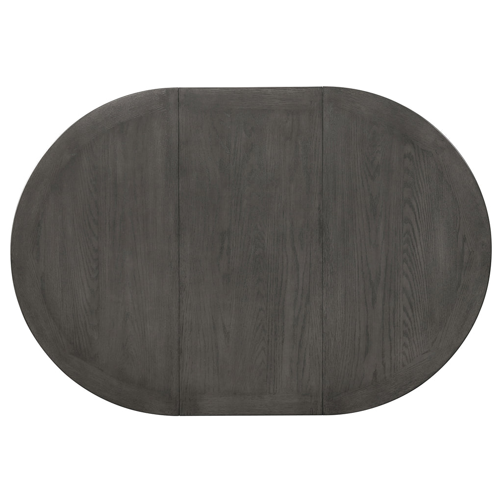 The sophisticated silhouette from this five-piece dining set features a sophisticated silhouette transforms a classic space. Warm up a neutral motif with the rich cappuccino finish. Invite an open feel into a dining room with smooth and sleek legs. Accommodate guests easily with the built-in storage unit, great for storing extra dinnerware. Great for family and friends, the oval-shaped table is complete with a leaf.
