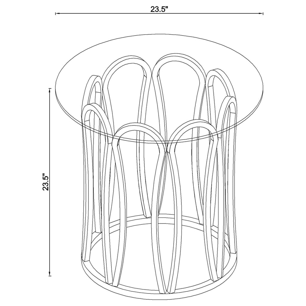 This coffee table set features a round design with clear tempered glass tops supported by sturdy metal frames. The frames are finished in electroplated chocolate chrome, delivering a sophisticated, deeper brass tone. The geometric base design on both tables adds a contemporary touch, while the tempered glass tops provide durability and easy maintenance. These tables offer functional elegance, making them an excellent addition to any living room or lounge area.