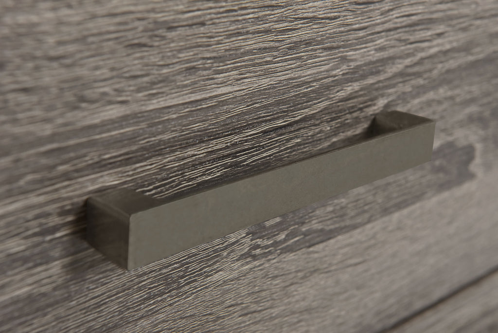 Create your ideal bedroom ambiance with the fresh, casual style of this transitional bedroom set. It features engineered wood construction with durable laminate surfaces, creating a stylish look with its brown oak wood grain finish. The set is clean lined, delivering a tall, squared headboard with foam padding and tan upholstery, creating the perfect place for lounging and reclining. The bed is complete with a low footboard and rails, offering a complete look that remains open and airy, great in small and large bedrooms alike. Storage pieces add ample drawer space and roomy tops, perfect for creating organization and offering a place for a personal touch of decor.