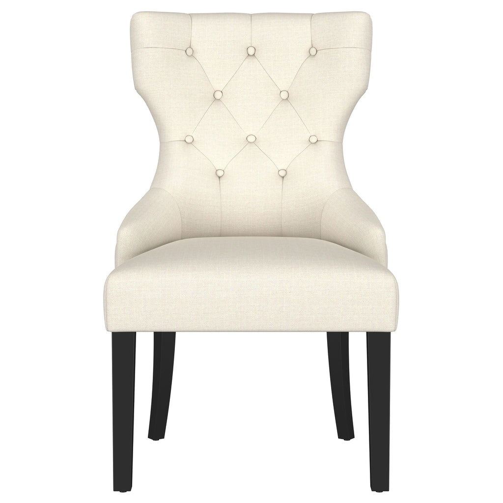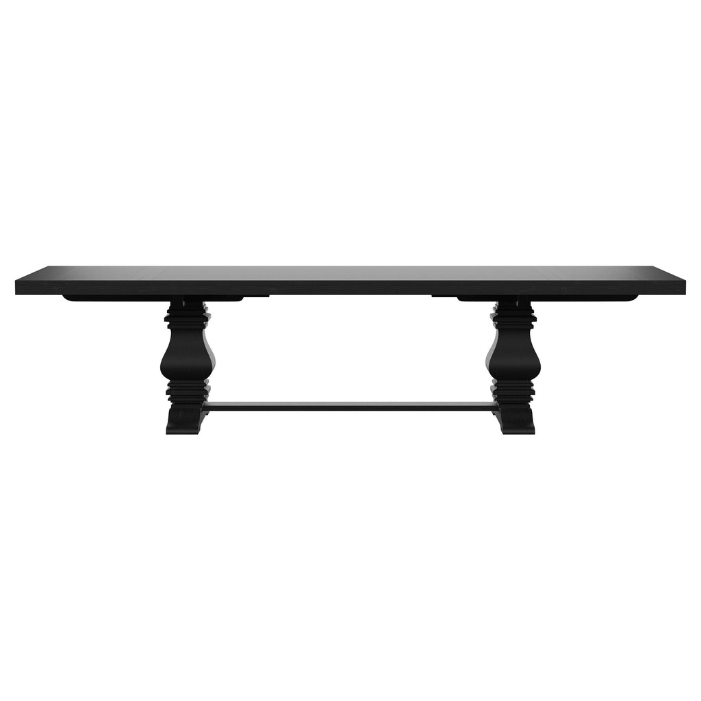 Transform your dining space with the perfect blend of timeless elegance and modern comfort. This dining set showcases a stately rectangular table with a double pedestal trestle base, evoking romantic charm and artisanal craftsmanship. The antique black finish lends a dramatic, yet versatile touch to any dining room. Paired with beautifully tufted dining chairs, the set brings a soft, inviting aesthetic, with plush cushioning and a graceful wingback silhouette. Designed for hosting family dinners or special gatherings, the table expands easily with a removable leaf, ensuring ample space for cherished guests. This dining set combines refined detail and functional versatility, creating a warm and welcoming space for every meal.