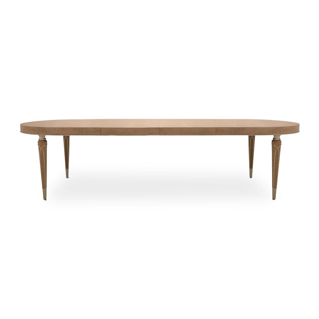 - Painted tabletop design is finished in Chardonnay
