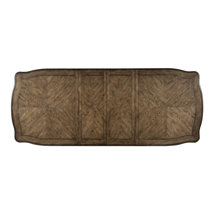 The elegant profile of the Heath Court Collection is comprised of classic elements that have been combined to create the perfect addition to your home’s traditional décor. The formal styling of the table includes classic elements such as the turned double pedestal trestle base, routed table edge and decorative wood grain. The white oak veneer that graces the collection is highlighted with a brown oak finish. 44 x 76 - 92 - 108 x 30H