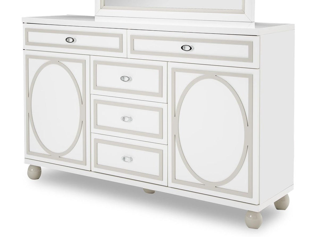 AICO Sky Tower Dresser in White Cloud, 60.25W x 17.25D x 38H, 271lbs.