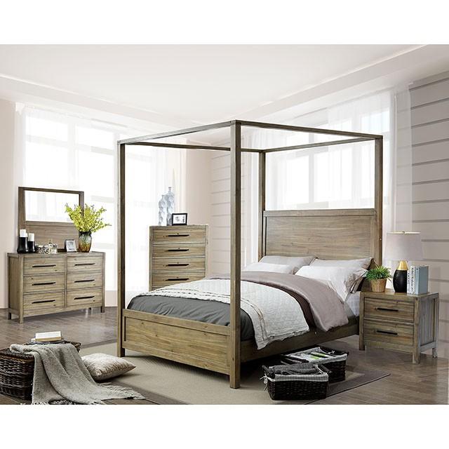 This large dresser mirror is framed by light oak finished wood panels, making for a simple and elegant addition to your bedroom set.