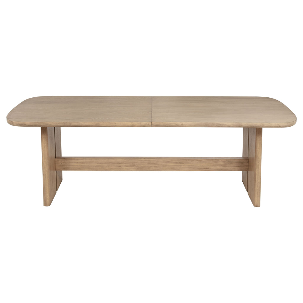 This elegant dining table brings both functionality and style to your home, with its expansive profile and warm, natural wood grain. Crafted from solid wood, engineered wood, and oak veneer, it exudes timeless appeal and durability. The 18-inch extension leaf allows the table to comfortably accommodate up to 8 chairs, making it ideal for family gatherings or dinner parties. Its smooth rectangular top, with gently rounded edges, highlights the beautiful wood grain, adding texture and depth to the overall design. Whether for daily use or special occasions, this table's combination of clean lines, sturdy construction, and natural finishes make it the perfect centerpiece for your dining room.