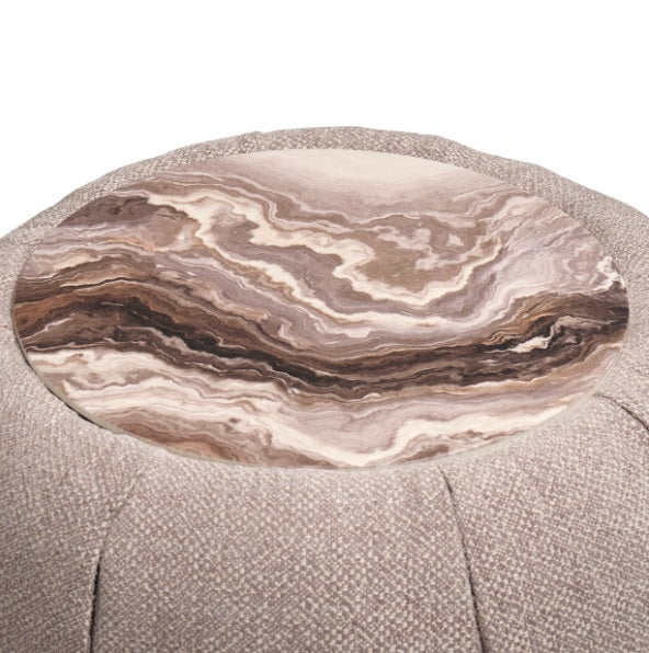 AICO Furniture Lucca Side Table in Silver LFR-LUCA202-808. A harmonious blend of style and utility. Dressed in channeled woven fabric and topped with a faux marble surface. Optimally designed to align with your favorite chair, it's the perfect companion for your seating ensemble or a chic stage for your home accessories.