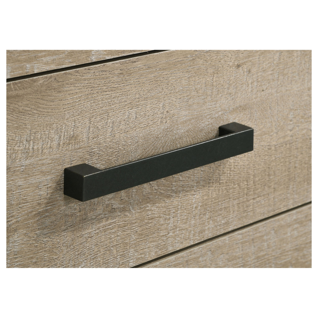 Elevate your bedroom with this cohesive set, designed to blend rustic charm and modern sophistication. Featuring a weathered oak finish, it highlights natural wood grain textures for a warm, inviting atmosphere. Constructed from engineered wood with a scratch-resistant veneer, this set ensures durability and long-lasting appeal. Dark bronze accents add a bold, contemporary touch, while ample storage and thoughtful design make it both functional and stylish. Perfect for rustic or transitional interiors, this set transforms your space with timeless elegance.