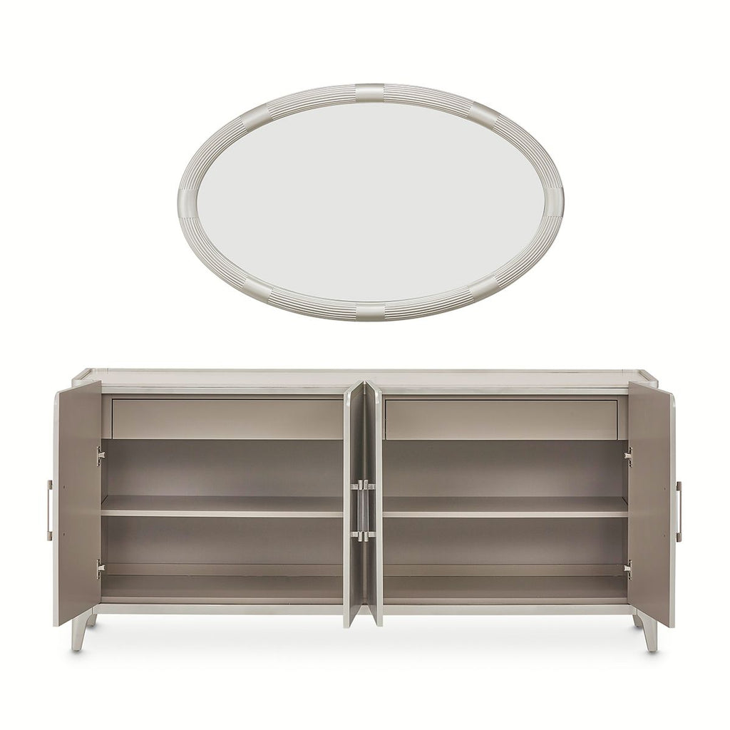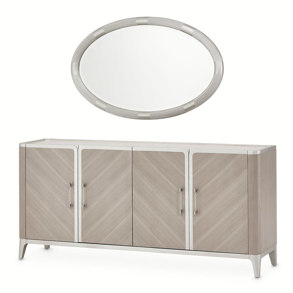 AICO Lanterna Sideboard in Silver Mist, 74W x 19.5D x 34.25H, 289lbs.