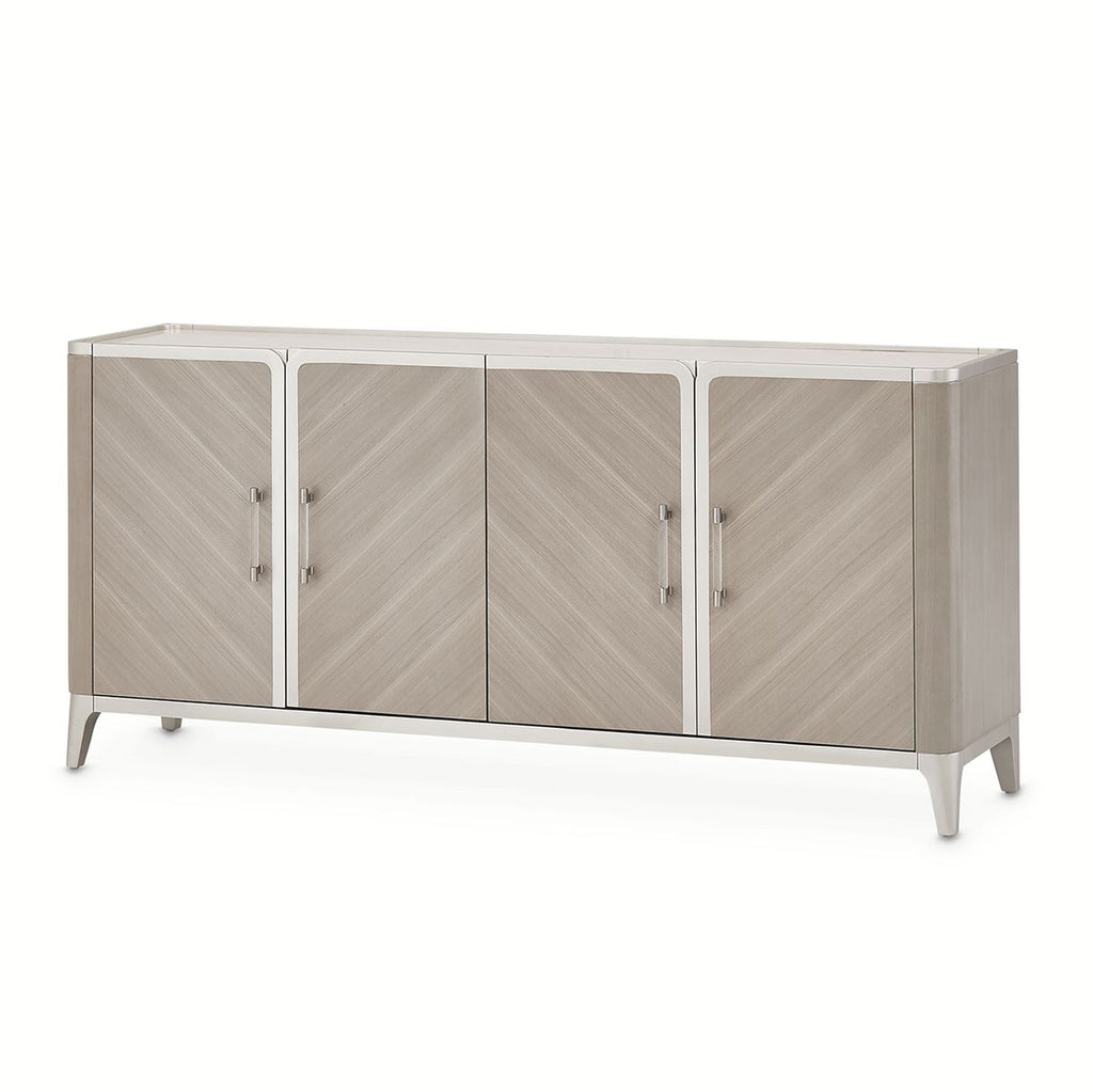 AICO Lanterna Sideboard in Silver Mist N9032007-823. Marble top, platinum trim, and a gorgeous wood finish. With plenty of space for your dishes, glasses, and flatware, what more could your contemporary home ask for?.