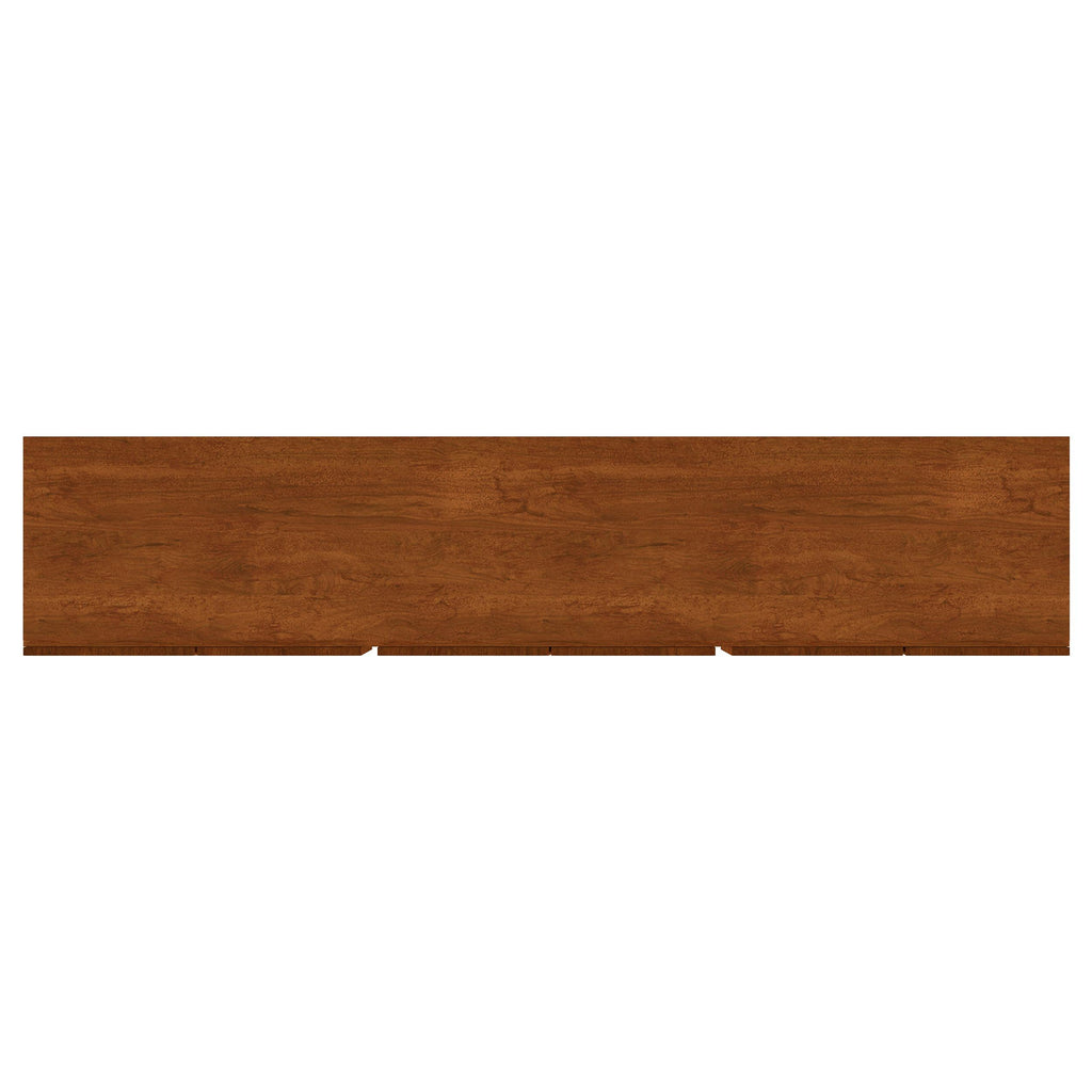 This spacious TV stand is crafted from solid mango wood, offering ample storage with its six doors and adjustable shelves. The mango brown finish highlights the natural beauty of the wood grain, giving it a warm and timeless look. Curved panel details on the doors add a modern touch, while interior shelves provide versatile organization options. Supported by sturdy metal legs, the sideboard blends rustic charm with industrial durability, complete with cable cutouts for media management.