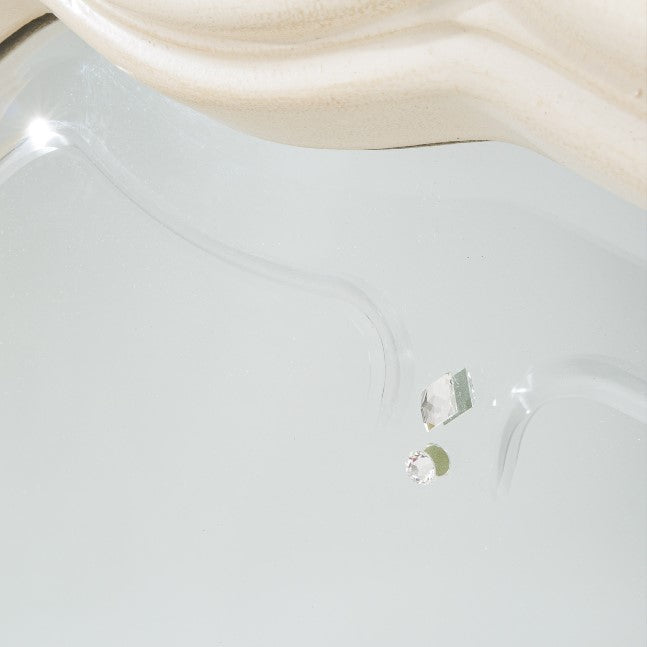 AICO Lavelle Dresser Mirror in Classic Pearl 54060-113. For 26 years, AICO/Amini Innovation Corp has been known for original, high quality and intricately designed home furnishings. CEO and Founder, Michael Amini, combines his extensive world travels and his affinity for fashion to create the inspiration for each distinctive design. From the ancient ruins of Greece, to Russian palaces; from the sunny hillsides of Tuscany, to the charming cafes of a crowded Paris street, Michael finds inspiration in world culture, traditional art and architecture. It is his goal to create furniture that connects people emotionally with their culture, country and heritage. The Lavelle Melange Bedroom Collection by AICO Furniture is crafted from Birch solids Natural Birch and Basswood veneers. The influence of French regal comes to life with unique wing shaped headboards and footboards and scallop shaped pieces throughout the collection. A classic French look with a chic twist depicting a hip couture feel Lavelle Melange is finished in warm brown and is adorned with a glazed silver metallic tipping that highlights the traditional carvings. Accenting pieces throughout the collection are genuine Swarovski crystals which provide unique points of interest. Create a symphony of style in your home with this truly royal Lavelle Melange Bedroom Collection.