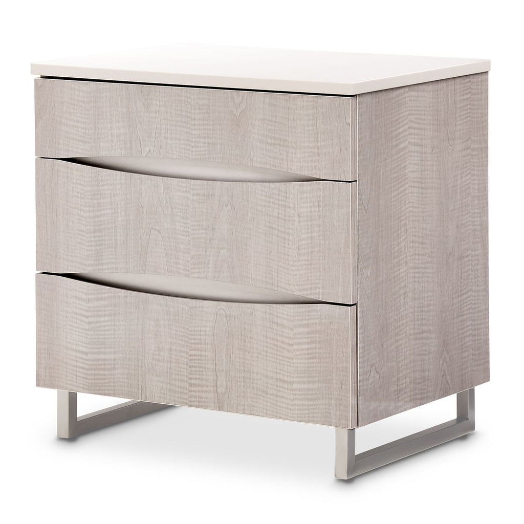 AICO Marin Nightstand in Greige, 26W x 18D x 26.25H, 120lbs.