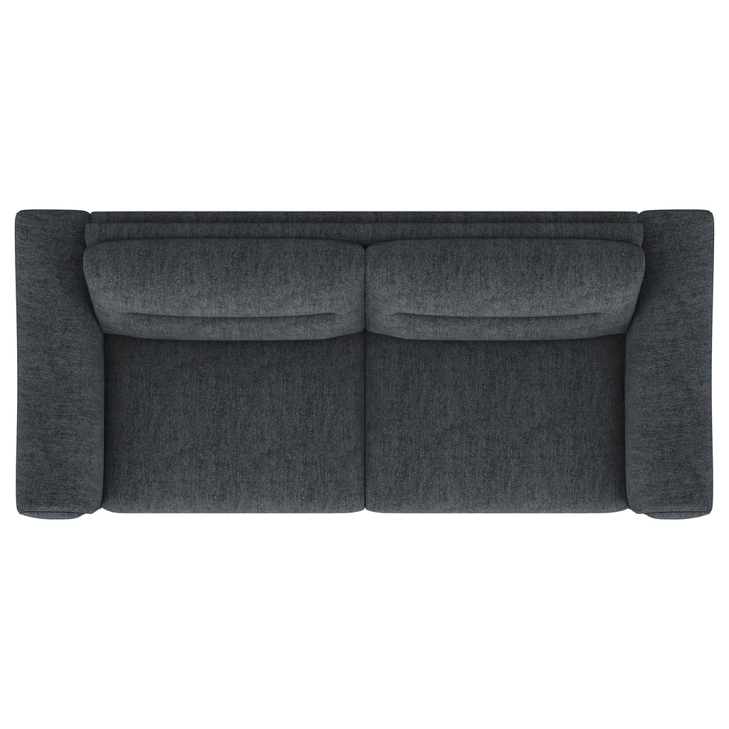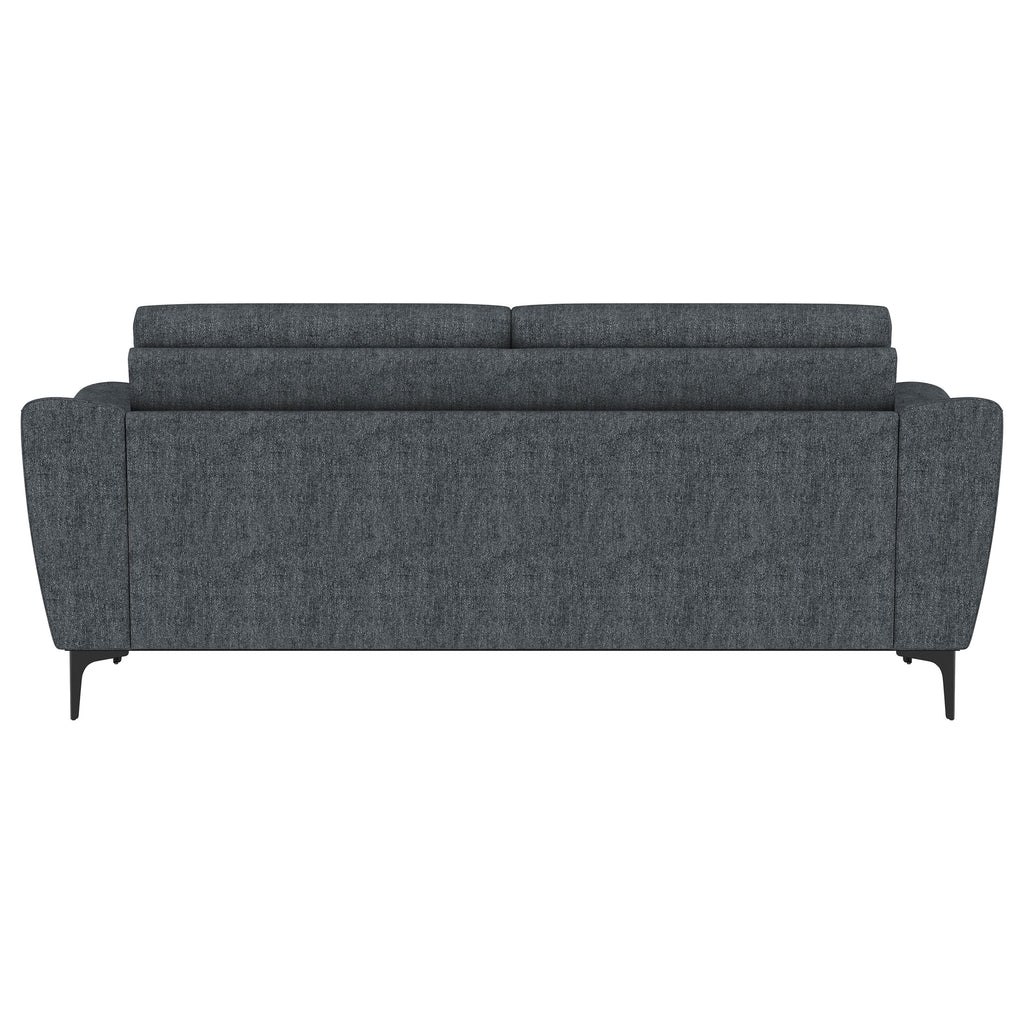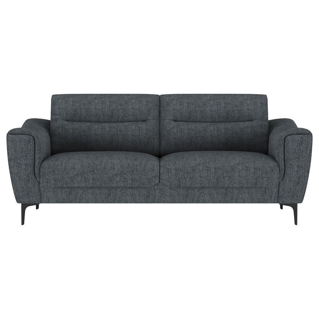 Indulge in effortless style and comfort with this chic transitional sofa. Soft charcoal upholstery gracefully harmonizes with any décor, while plush pocket coil seat cushions and modern track arms provide inviting support for your downtime. Designed with attached cushions for a neat appearance and innovative metal legs that allow for easy assembly, this collection elevates the overall ambiance of your living space.