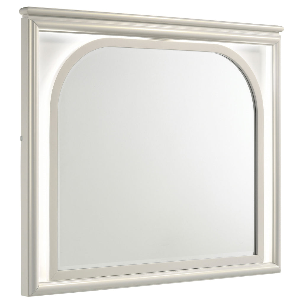 Indulge in the ultimate bedroom experience with this complete bedroom set, designed for modern elegance and luxurious comfort. The set includes a stunning bed, nightstand, dresser with mirror, and an optional chest, all finished in a sophisticated pearl white. Each piece features unique diamond star designs, chrome accents, and thoughtful touches like touch LED lighting and acrylic legs. This collection seamlessly combines contemporary style with practical functionality. Transform your bedroom into a haven of chic sophistication with this exquisite set.