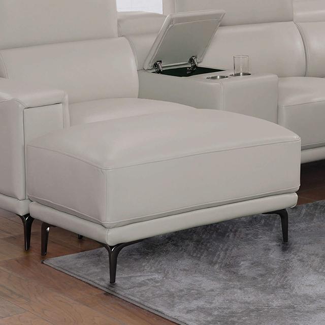 Modern design gets a tech update with this fun and innovative sectional upholstered in sleek leatherette. The neutral light gray tone is versatile as it works well in any space while the smoke-plated legs are made of steel--durable and reliable.