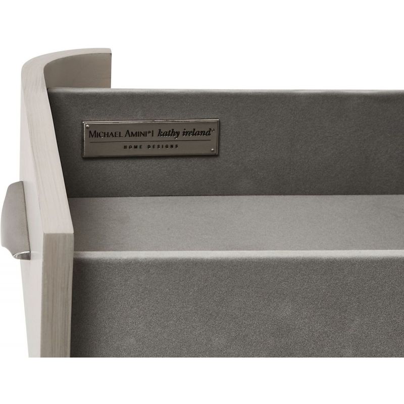 - (3) Drawers are velvet lined with self closing glides and handles finished in brushed nickel