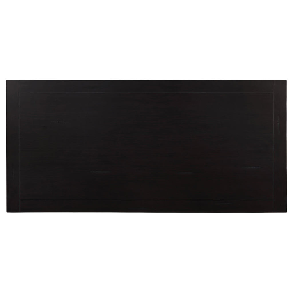 This stunning 5-piece dining room set is sure to be showpiece of the home. The rectangular wood dining table is marvelously crafted with clean, crisp lines. Its two sturdy legs feature a mix of curved lines and sharp angles for a strong, imposing manner. The four side chairs feature plush cushioning and rolled seatbacks with button-tufted craftsmanship. Chairs are upholstered in brilliant white fabric with contrasting nailhead trim and leg finish.
