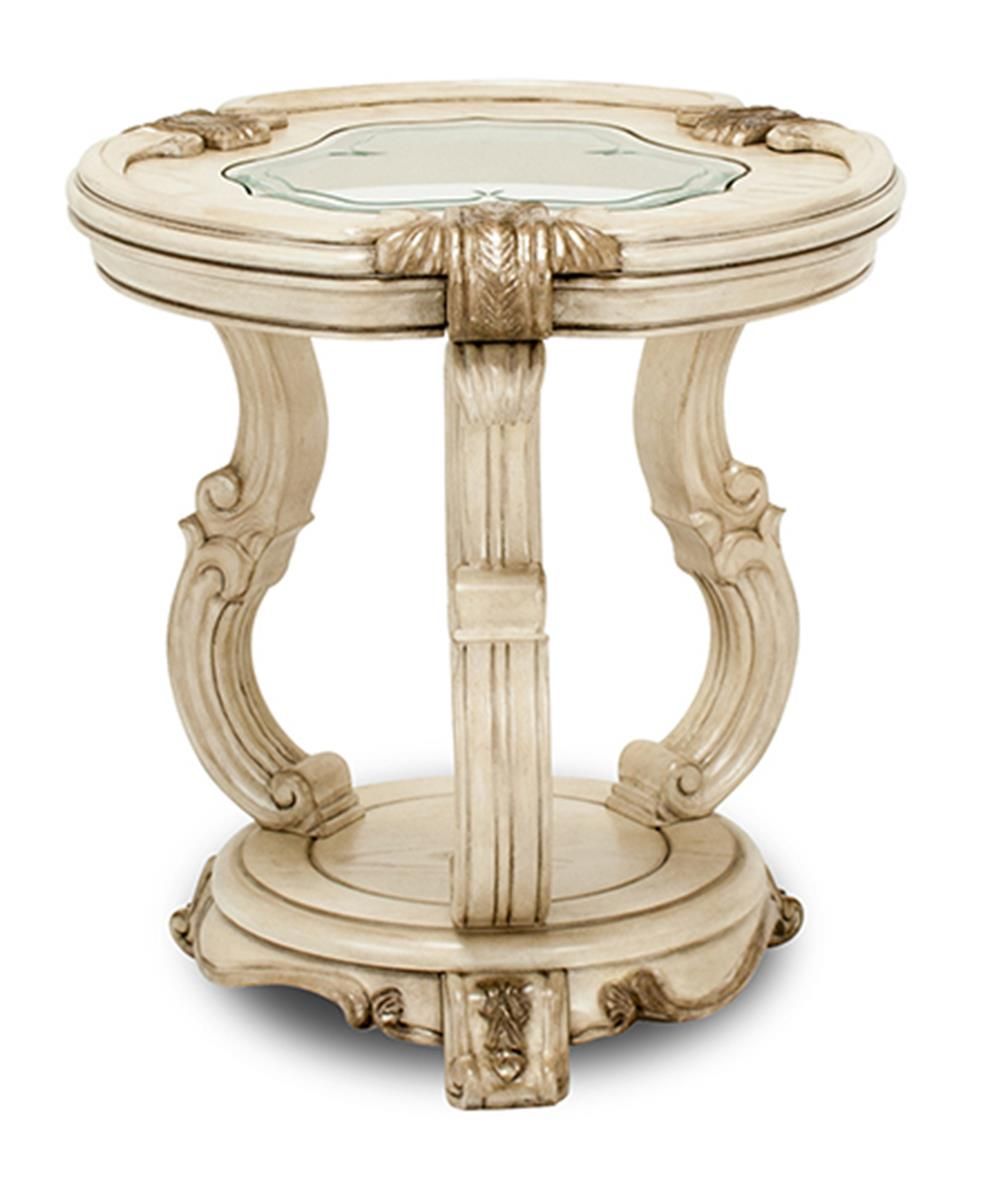 Aico Platine de Royale Chairside Table in Champagne, 24.25W x 24.25D x 25.75H, 40lbs.