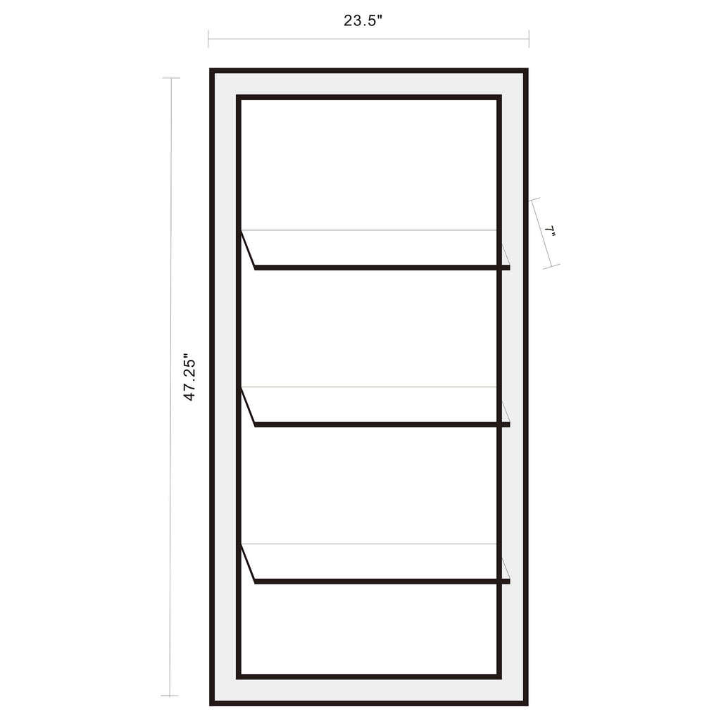 Present decor, bedroom essentials, and more along this modern glam wall mirror. Designed with an elongated, vertical mounting silhouette, this elegant wall mirror offers three narrow shelves to keep anything from perfumes to family photos. Covered entirely in a mirror tile, this wall mirror offers a dark tone edge that offers a defined contrast against the reflective mirror surfaces. A slim beveled edge along the outer mirror frame creates a classical aesthetic and hint of texture. Mount this wall mirror in a compact space to give the illusion of a more spacious interior.