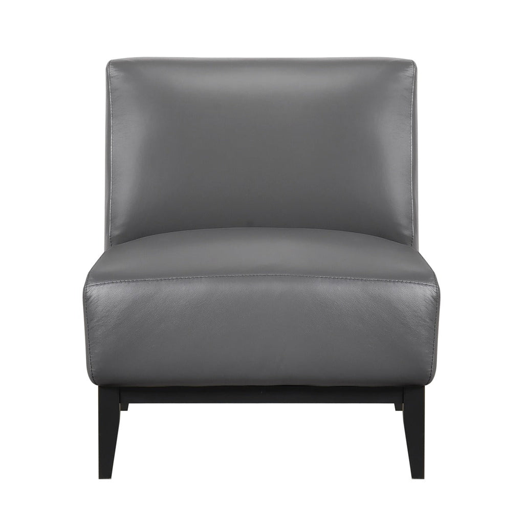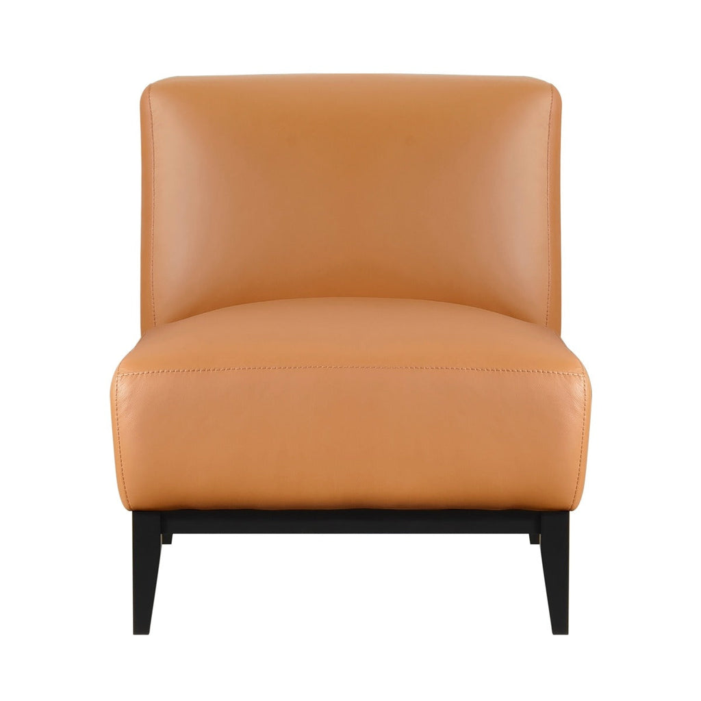 Elevate your living space with this sophisticated and comfortable slipper chair. Upholstered in 100% top grain leather, this chair offers a luxurious feel and timeless elegance. The solid wood and plywood frame ensures durability, while the high-density foam seat cushions provide exceptional comfort for extended relaxation. The attached back and seat cushions maintain a sleek profile, and the solid wood legs in a black finish add a modern touch. With a robust 300lbs weight capacity, this chair is designed to provide both style and support. Assembly is required, but the addition of this refined leather slipper chair will undoubtedly enhance the aesthetic of any room.