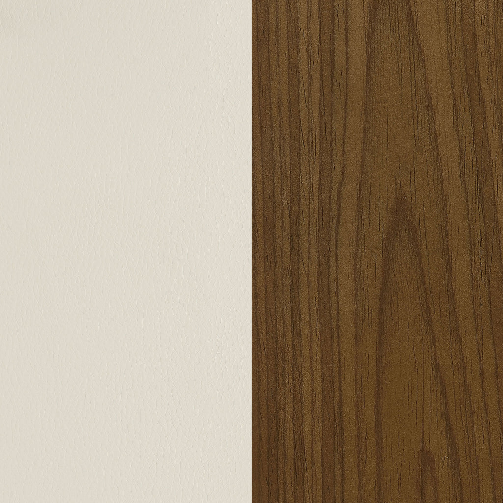 Stay true to a classic retro look. Delivering exceptional comfort, this office chair is a perfect blend of mid-century and modern styling. Tasteful elegance follows a clean, low-profile silhouette with a curved, padded seat and a gently curved seat back. Enjoy a lush palette with ecru leatherette upholstery and walnut and chrome trim. Adjustable seat positions and caster wheels add to its utility with custom seating and portability. Key Features: • Enjoy a classic retro look with a clean, low-profile silhouette, curved, padded seat, and gently curved seat back in ecru leatherette upholstery and walnut and chrome trim • Delivering exceptional comfort, adjustable seat positions and caster wheels provide custom seating and portability • Tasteful elegance follows a perfect blend of mid-century and modern styling • Enjoy a lush palette with ecru leatherette upholstery and walnut and chrome trim • Adjustable seat positions and caster wheels add to its utility with custom seating and portability