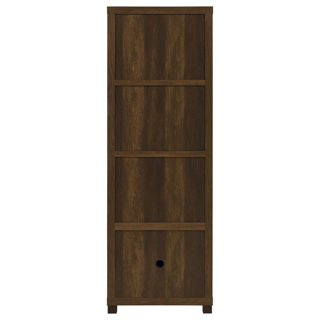 Conveniently designed in a vertical orientation, the Sachin media tower saves precious space in your compact or large living space. Make the most of a rustic look with a tower built of wood products with engineered veneer. Earth-inspired finishes mesh with most surroundings. Four storage compartments and three fixed shelves behind one side-open door invite media, books, or electronic components. Make this media tower an integral part of your updated entertainment plan. Key Features: • Conveniently designed vertical orientation saves space • Rustic look with wood products and engineered veneer • Earth-inspired finishes mesh with most surroundings • Four storage compartments and three fixed shelves • Integral part of updated entertainment plan