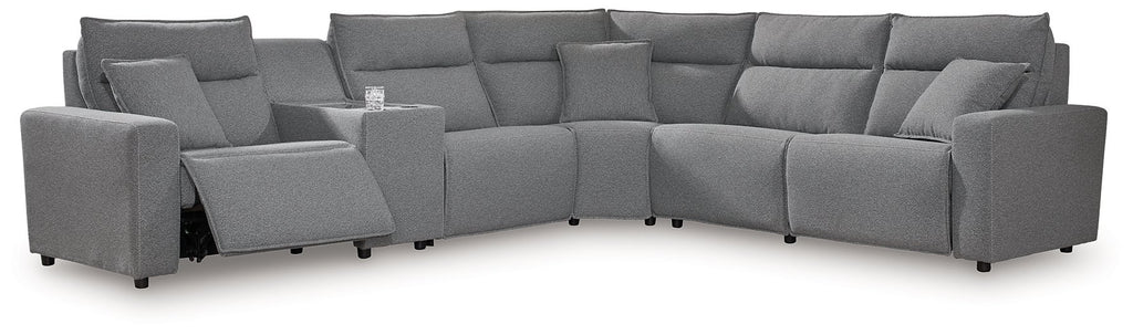 Looking cool and contemporary is great. But when it comes down to it, you’re all about low-maintenance lounging. With the performance fabric on this power reclining sectional, cleaning spills is a breeze. Its modular design caters to your ever-changing needs. And the console's removable plexiglass top is the perfect beverage perch during family movie night or when guests drop by. It's proof that modern design and superb comfort go hand in hand.