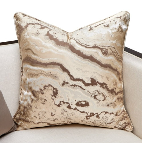 • Includes two accent pillows: one in a soft neutral tone and one with a marbleized design for added elegance.