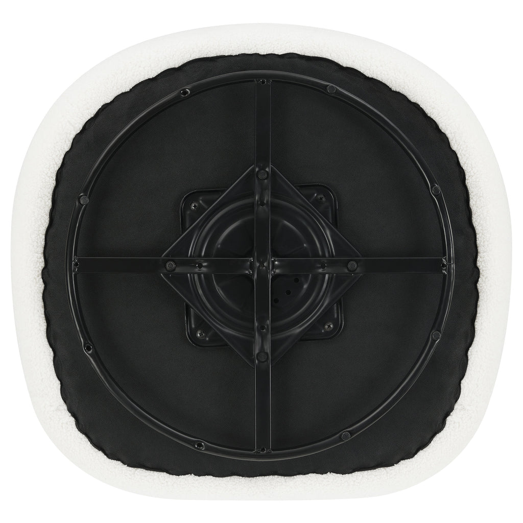 Covered entirely in a plush faux sheepskin material, this swivel chair invites you to curl up and relax. Rotating a full 360 degrees, this accent chair is perfect for open floor plans and versatile spaces. The vintage-inspired barrel-like design offers ultimate support with a tailored, tight seat and a rounded, low-profile backrest that wraps into the arms toward a slight taper. A flush base keeps the swivel mechanism discreetly hidden and offers a sleek profile. The light hue of the faux sheepskin also makes this furniture piece easy to coordinate within a space.