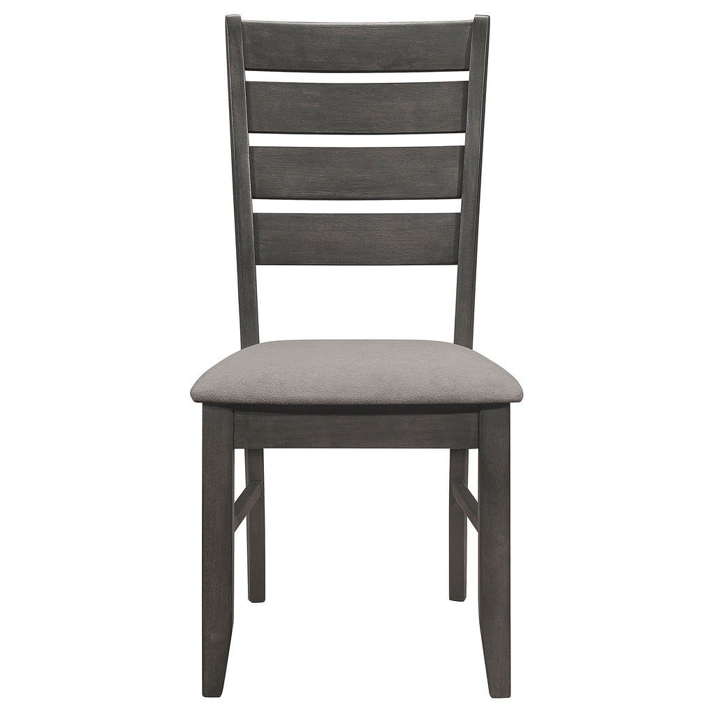 Blending classic style with everyday comfort, this dining chair features a solid rubberwood frame designed for durability. A ladder-back design adds timeless appeal, while the padded seat ensures long-lasting comfort. The slightly curved backrest enhances ergonomic support, making it an inviting option for long meals, family gatherings, and everyday dining. Designed to complement a variety of dining tables, this chair offers a versatile seating solution for both formal and casual spaces. Key Features: • Classic dining chair designed for style, comfort, and reliable support • Rich cappuccino finish highlights the timeless ladder-back frame beautifully • Padded seat upholstered in black faux leather for a sleek and modern touch • Solid rubberwood frame ensures long-lasting durability and stability • Slightly curved backrest enhances ergonomic support for all-day comfort • Sturdy legs provide excellent reinforcement for everyday dining use