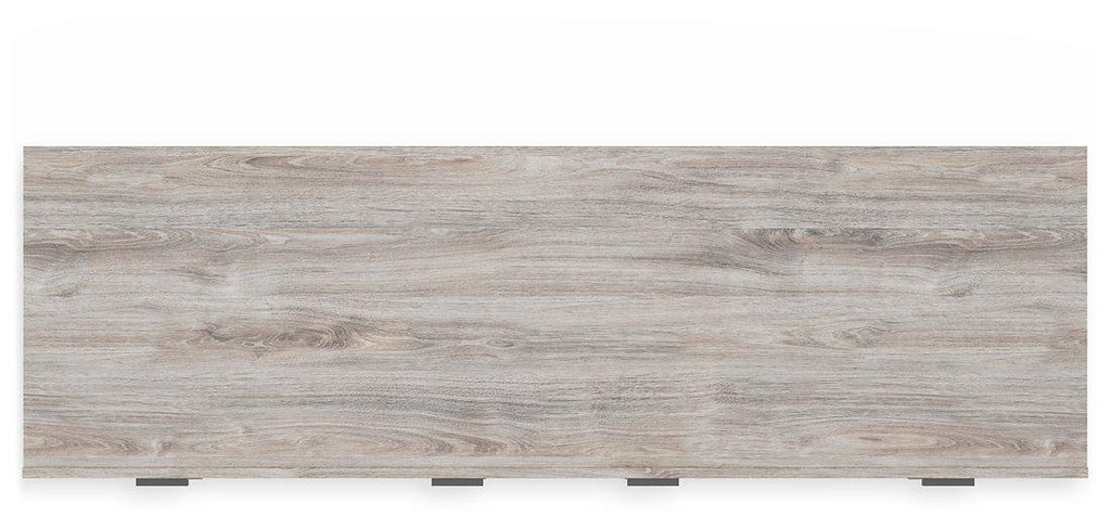 • Light gray finish over a replicated oak grain with authentic touch; base has matte black finish with subtle replicated wood grain