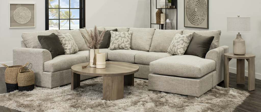 Transform your living space with the Villanova collection’s 2-piece oatmeal sectional, a blend of elegance and homely comfort. With its neutral hue, this sectional adds a touch of sophistication to any room. It's built to last, with solid craftsmanship and soft, oatmeal fabric upholstery that fits seamlessly into a range of decorating styles.